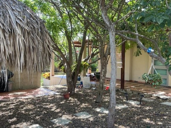 tiene agua triplea. tranformador y acometida electrica propia. y tiene plafon para segundo piso La piscina no está hecha. Solo la plantilla para una piscina armable. Lo demás sí está tal cua